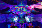Installation visualizing flow arts performers as a digital mirror using the kinect sensor and live mixing 2 outputs overlayed at Architextures in Toronto 2015